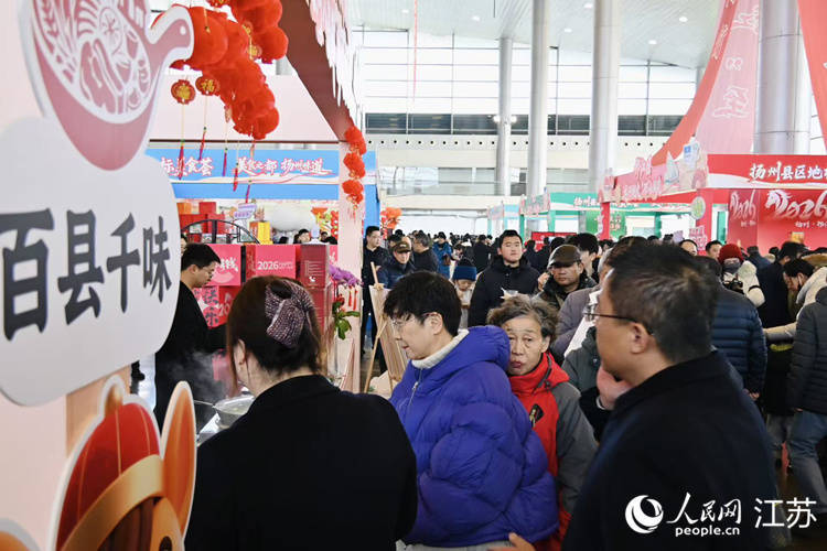2026年“来扬州 过新年 行大运”举止上,市民列队采购年货。东说念主民网 李静晔摄