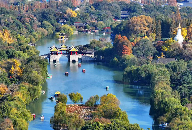 航拍瘦西湖表象区。扬州市新闻传媒中心供图