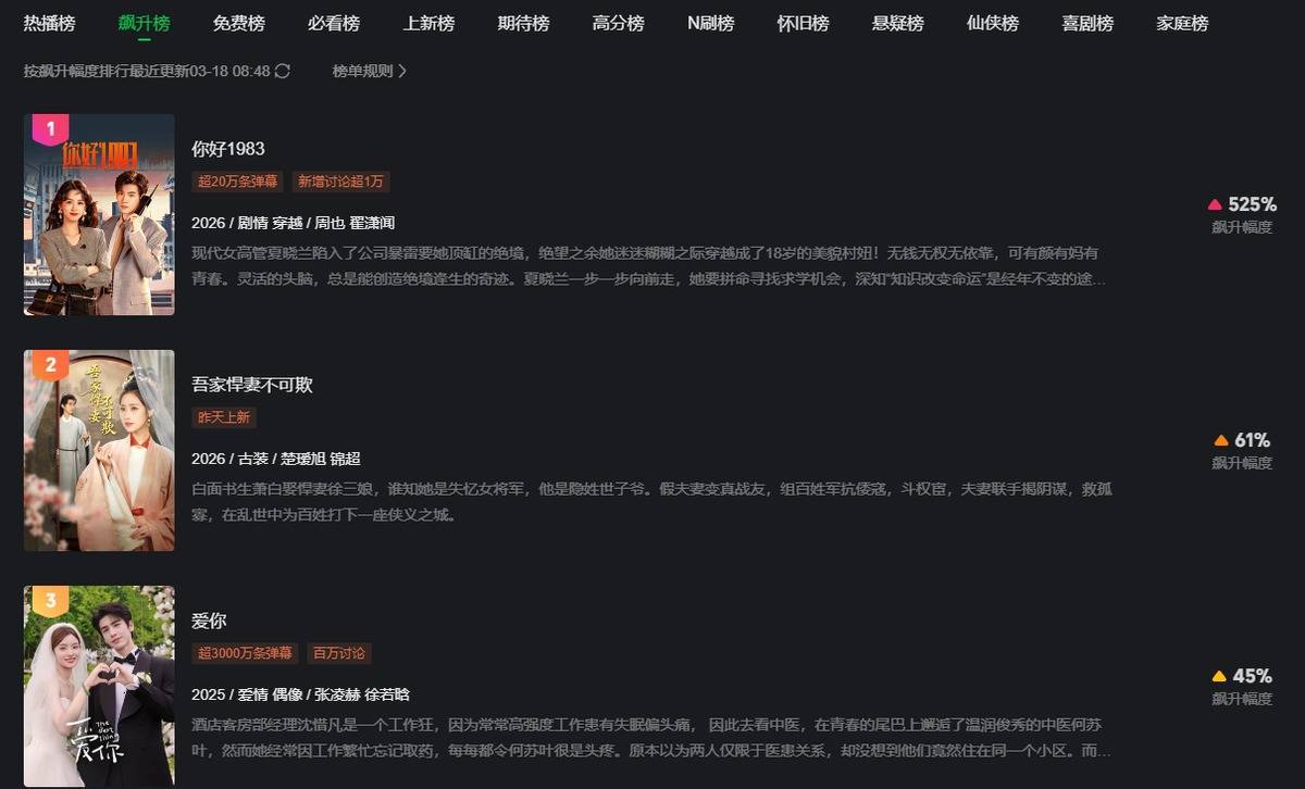 仅播6集,平直拿下飙升榜第一,清一色的好评讲明了这部剧的品性。