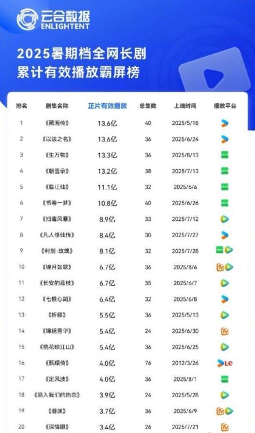 2025暑期档也曾由去欧洲杯体育,列位读者,你们看哪些剧了呢?近日,暑期档全网长剧累计有用播放霸屏榜单更新,让内行没思到的是,“爆剧”《生万物》仅排第三名,比较之下,第别称足够是实至名归的,这部剧是哪部呢?
