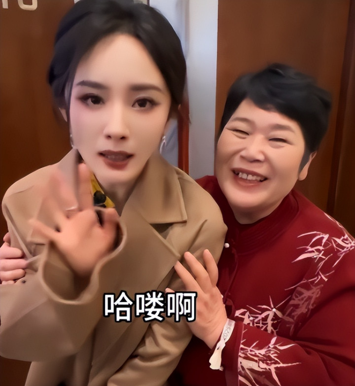 视频中,她亲昵地搂着杨幂,一同对着镜头为犬子录制道喜内容。