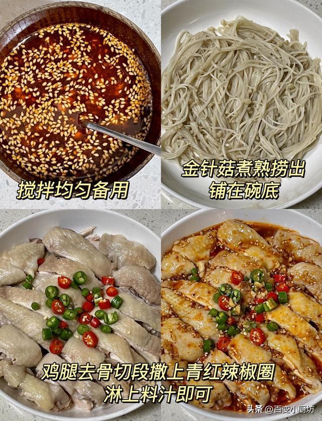 1. 煮鸡肉:鸡肉洗净,放入锅中,加净水、姜片、葱段,大火烧开,撇去浮沫,转小火煮15分钟,关火后焖10分钟,这么鸡肉更鲜活,不会煮老。捞出后,放入冰水中浸泡10分钟,让鸡肉口感更紧实;