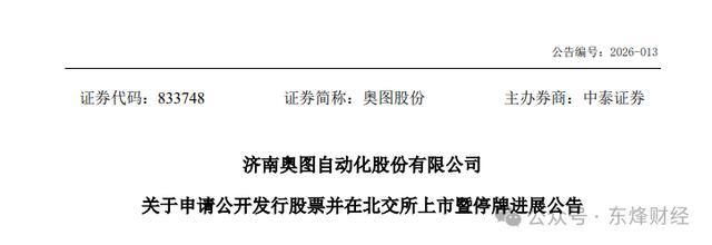 4月7日欧洲杯体育,济南奥图自动化股份有限公司(简称“奥图自动化”)发布公告,秘书拟间隔向不特定及格投资者刊行股票,撤退在北京证券来回所的上市苦求材料。这距离其IPO中止仅昔时一周手艺。